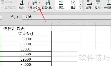 在弹出的删除重复项对话框中,点击删除重复项,即可清除表格中重复月份的整行数据。