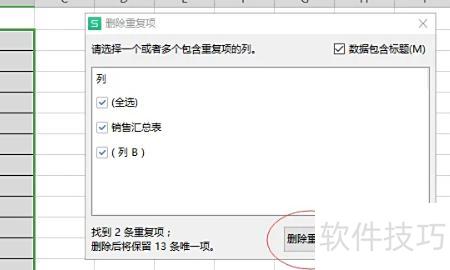 点击选择重复项,从下拉菜单中选取删除重复项功能。
