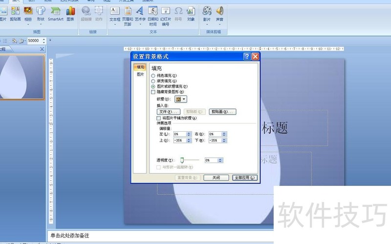 在PPT2007中,将保存的图片设为背景的方法如下:
