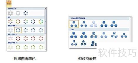 双击图表,选择主题颜色,再选配合适的SmartArt样式。