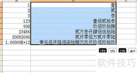 点击第二项,再确认退出,转换区域的数字将全部显示为中文。