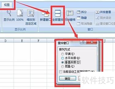 在同一窗口中显示两个文件,可选择视图→重排窗口,在弹出界面中点击垂直并排即可实现并列显示。