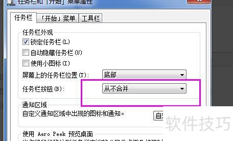 第三种方法是在电脑任务栏中,找到任务栏按钮设置,其默认为自动合并,可手动更改为从不合并。