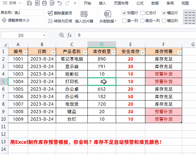 在日常工作中,需密切关注产品库存,及时补充不足。若产品种类不多,又不愿购买专业库存管理软件,可利用Excel制作简易实用的库存预警模板。当库存低于设定值时,系统自动预警并标红提示,直观显示补货需求,帮助快速判断是否需要进货,操作简便,高效实用。