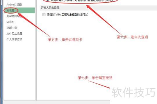 点击宏设置,勾选启用所有宏,确认后返回上一界面。