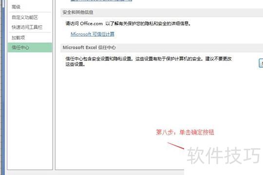 打开Excel选项后,于左侧选择信任中心进行设置。