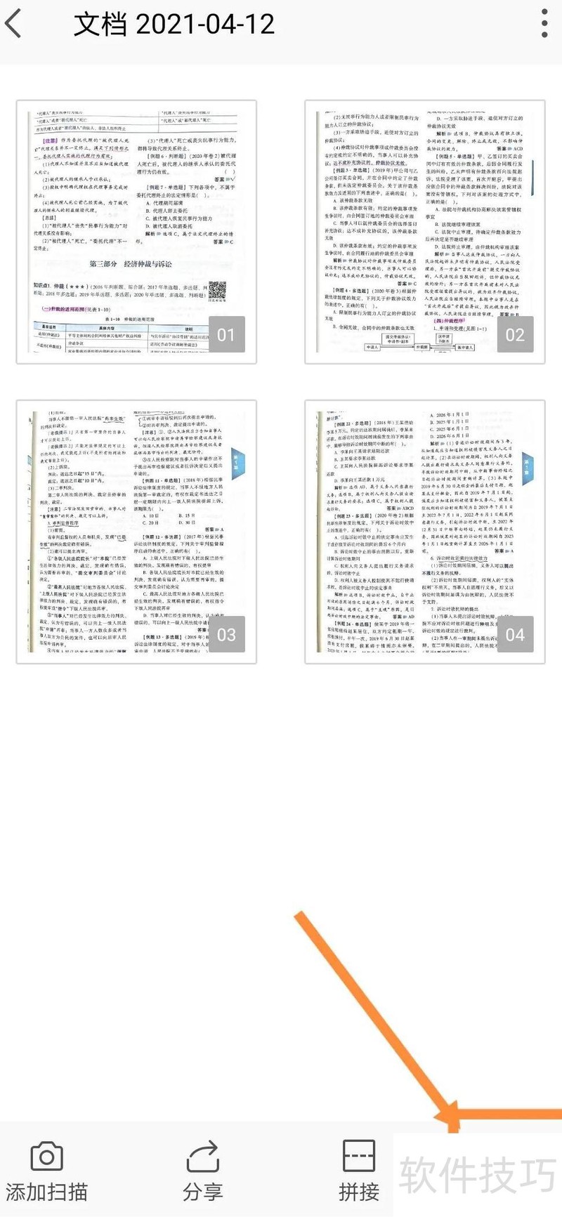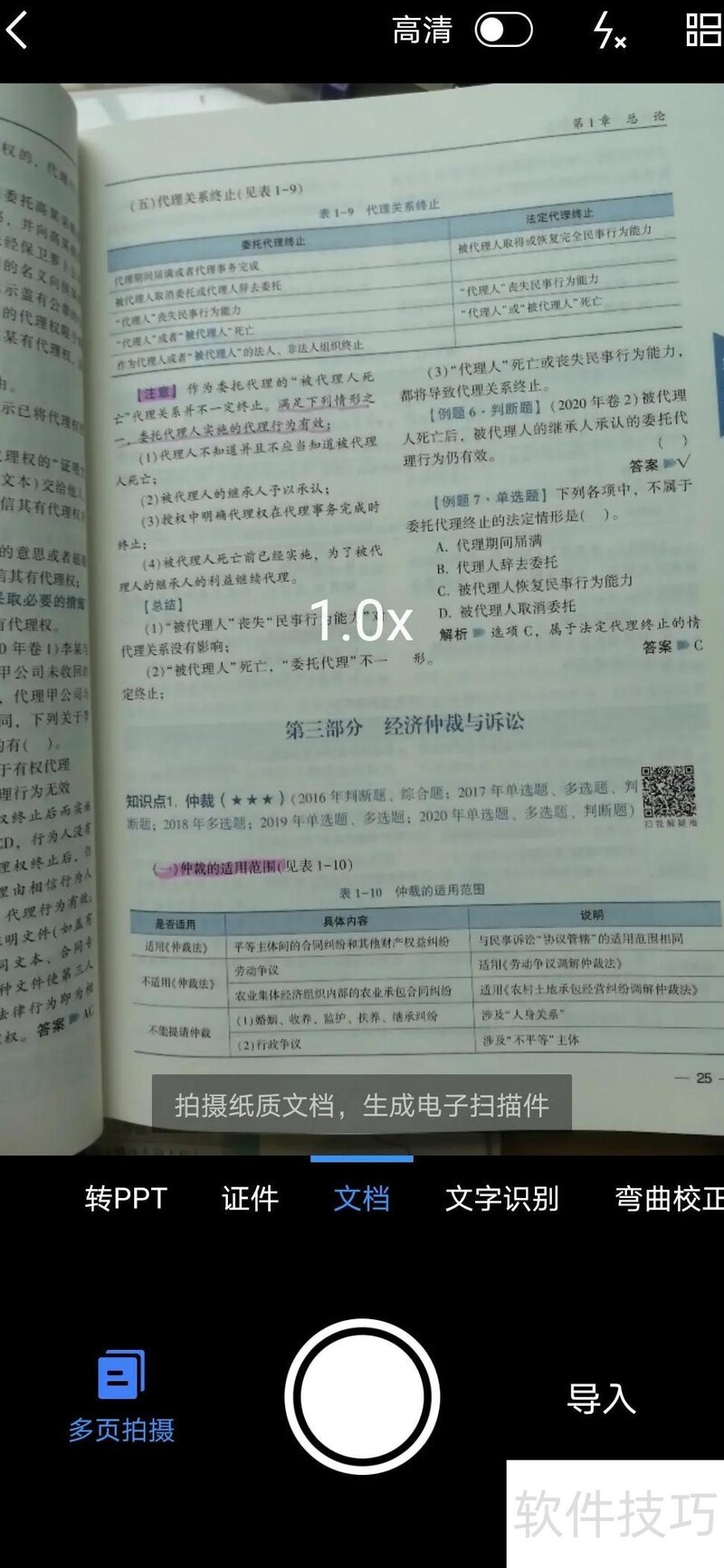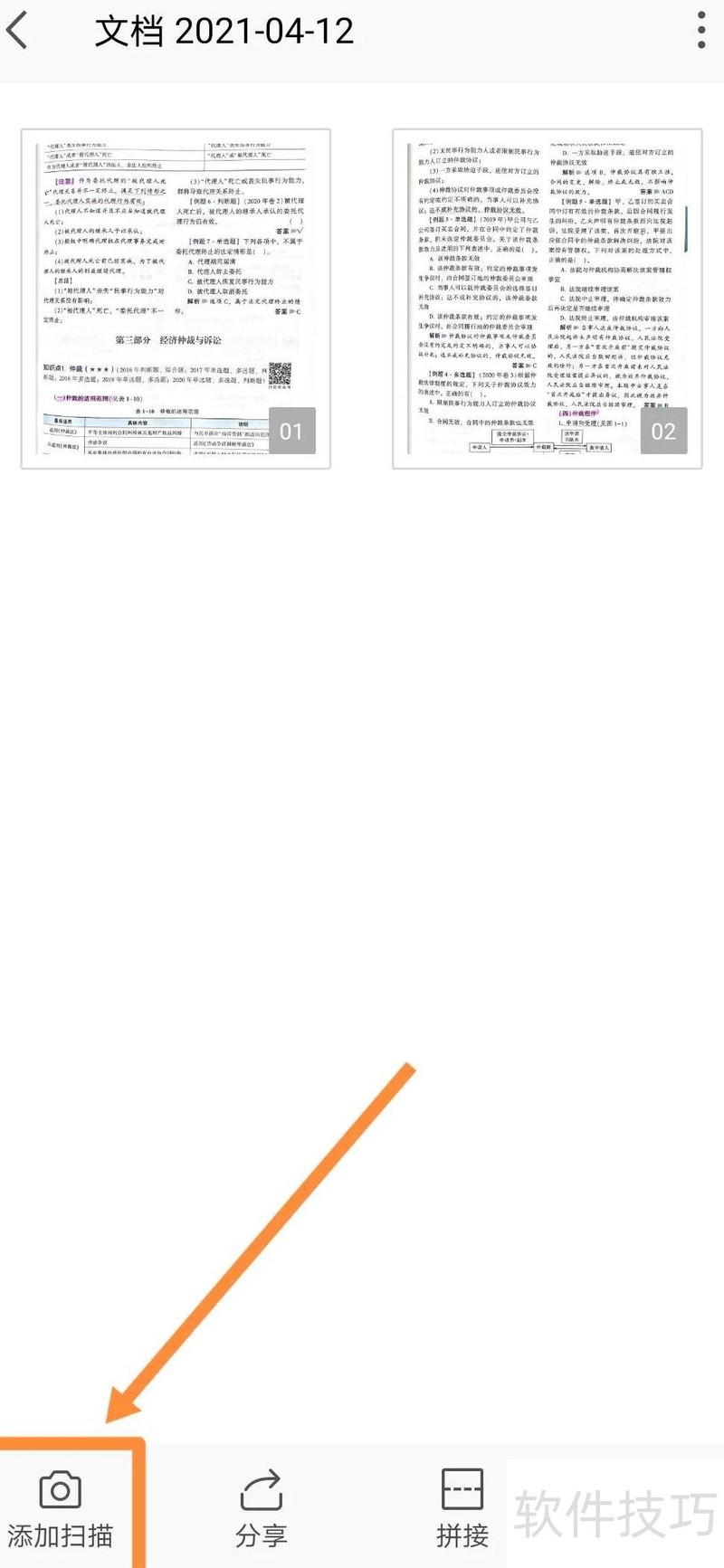 准备好待扫描的文件,点击拍照按钮,将手机对准文字进行拍摄。若需扫描更多内容,可点击屏幕左下角的添加扫描,具体操作所示。