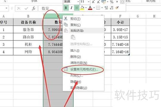 选中需正常显示数字的单元格,右键点击,从菜单中选择设置单元格格式。