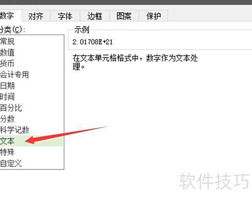 在格式框中选择数字下的文本,然后点击确定。