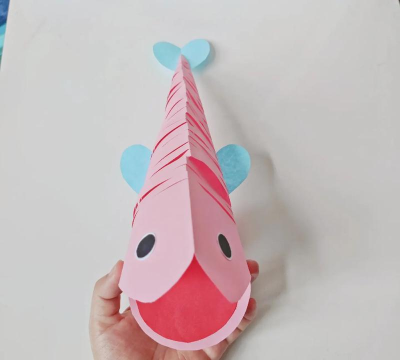 多练习几次,你会折得更快更好,还可以尝试不同大小和颜色的纸,折出一群小鲨鱼,放在桌上当装饰,特别有趣,快动手试试吧。
