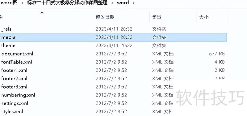 进入Word文件夹,其内包含一个名为media的子目录。