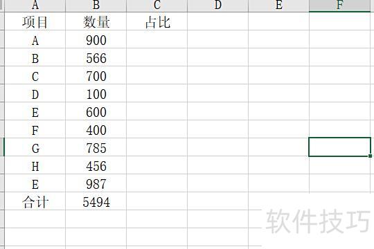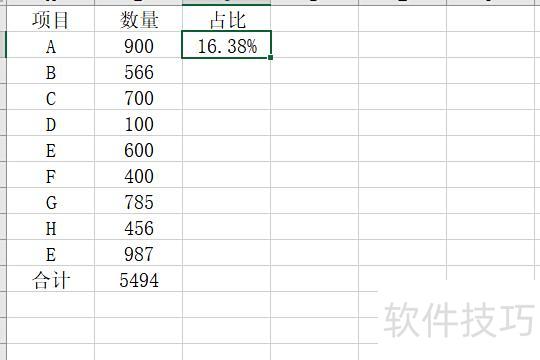 首先打开需计算比例的Excel表格,选中首个目标单元格,在函数栏输入公式=B2/$B$9,表示B2单元格数值除以B9单元格的绝对引用值。按下回车键后得出结果,显示为小数形式,便于后续转换为百分比或其他格式。