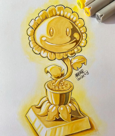 2、抓住每个植物的特点特点就是灵魂,画得像不像,全看这里,向日葵要有笑脸,和一圈花瓣,豌豆射手得有张开的嘴,和头上的叶子,坚果墙要画得胖乎乎,看起来很敦实,抓住这些标志性特征,你的画就成功了一大半。