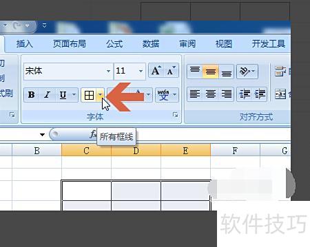 在Excel 2007的开始选项卡中点击所有框线按钮。