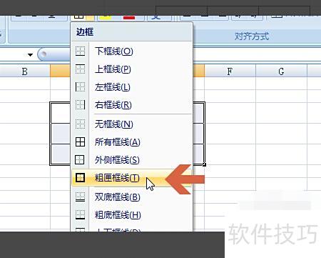 若仅需加粗外框线,可直接点击弹出菜单中的相应选项即可完成设置。