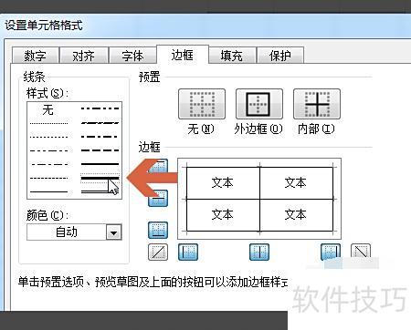 选择样式后,点击右侧预设表格中的线条,可直接调整其粗细。