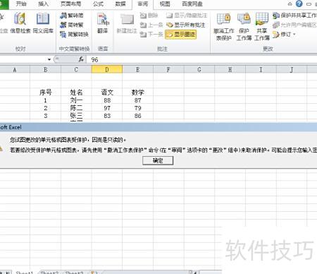 此时Excel表格已被锁定,他人无法更改其中内容,具体效果所示。