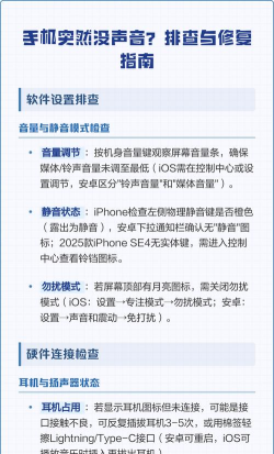 手机没声音别焦虑,一步步来排查,从软件到硬件,从简单到复杂,大多数情况都能解决,保持耐心,你的手机很快就能重新“开口说话”。