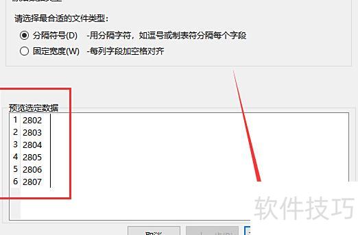 3、点击分列按钮,在弹出的对话框中核对数据无误后,点击下一步(所示)。
