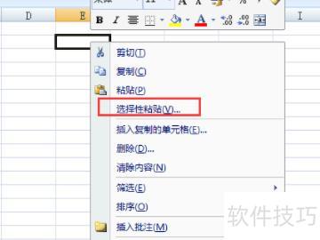 复制完成后,选中空白单元格,右键点击并选择性粘贴。