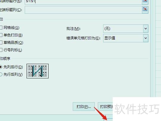 4、返回至打印设置页面后,可见表格首行标签已被选中。此时只需点击确定,即可在普通打印机上通过Excel完成标签打印操作。