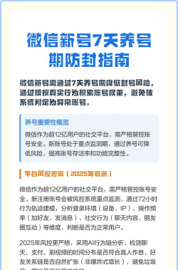 4、长期维护,保持账号价值养号是一个长期过程,需要持续维护,定期更新个人资料,保持新鲜感,然后,参与微信内的正规活动,比如小程序游戏,接着,可以加入一些优质群聊,但别乱发广告,同时,保持通讯录的整洁,定期清理僵尸粉,另外,如果更换手机,记得及时解绑再绑定,这样,你的账号权重会慢慢提升,甚至,未来如果需要解封,也会更容易,所以,耐心和坚持,很重要。