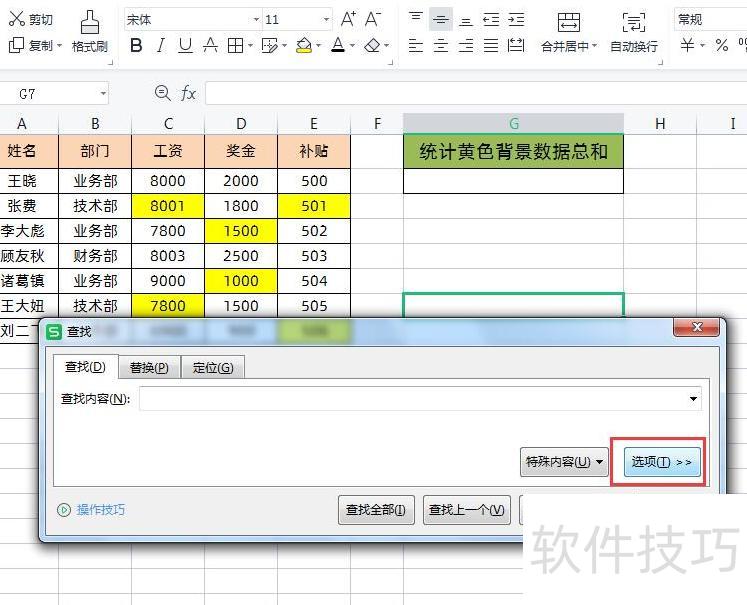 当鼠标变为吸管图标时,点击黄色单元格,再点查找全部,最后按Ctrl+A全选所有黄色单元格。