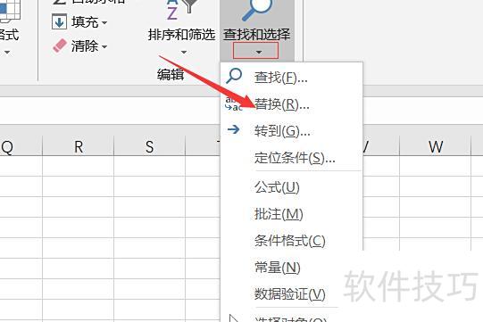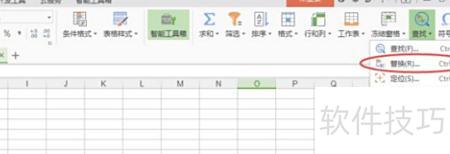 打开表格后,点击查找菜单中的替换选项。