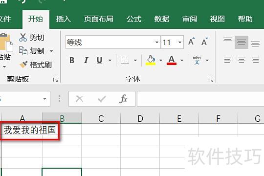 打开需操作的Excel表格,以输入我爱我的祖国为例,当前在数据前已输入了两个空格。