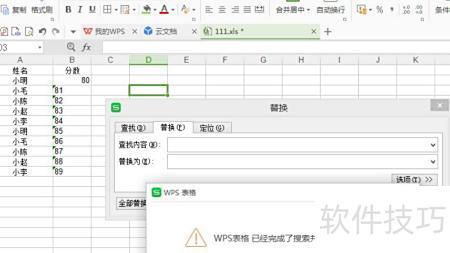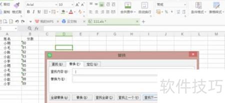 在弹出的查找和替换窗口中,切换至替换选项卡,在查找内容栏输入空格,保持替换为栏为空,然后点击全部替换按钮完成操作。