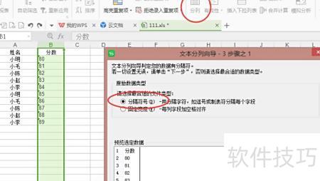 4、选择分割符号