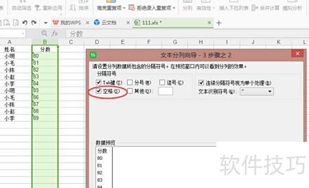 5、选择按空格分隔