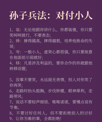 3、强化自身,用实力说话应对小人,最好的防御是强大自己,当你业务能力突出,成绩有目共睹时,谣言就不攻自破,专注于提升专业能力,做出实实在在的业绩,同时,建立良好的同事关系网络,让大家了解你的为人,这样,小人的话,就没人会轻易相信,你的根基越稳,就越不容易被撼动。