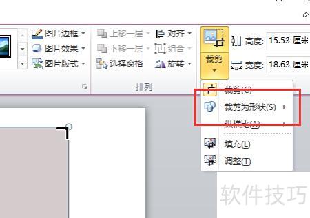 选中图片后,点击格式选项卡,找到裁剪按钮,点击下拉菜单中的裁剪为形状即可完成操作,具体效果所示。