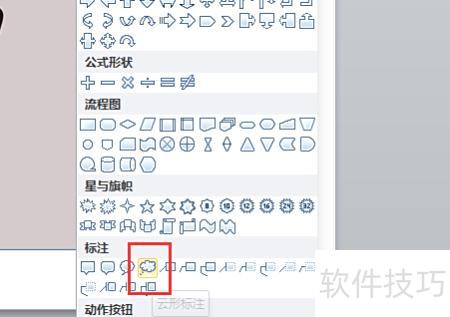 在弹出的形状选项框中选择所需裁剪的形状,本例演示选用标注类别中的云形标注样式,具体所示。