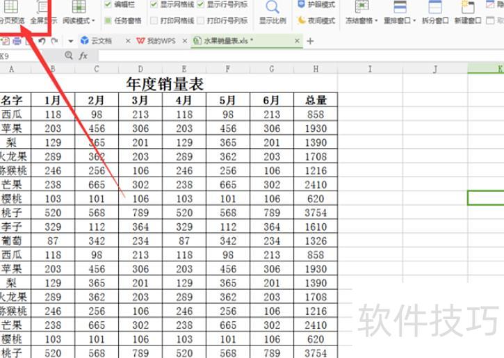 打开Excel工作表,设置表格内容分页显示。
