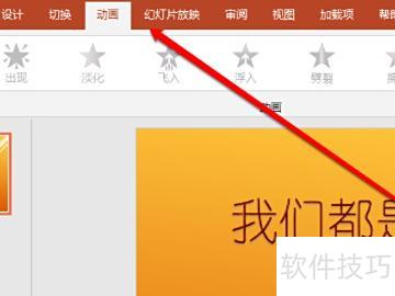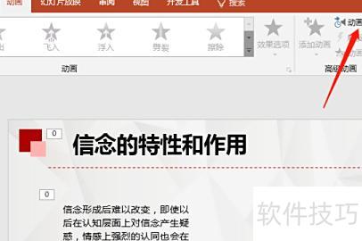 在PPT顶部功能区选择动画菜单,点击后于下拉列表中找到并打开动画窗格选项。