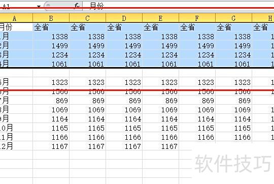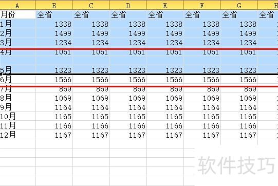 若行间有空行,仍可用此法快速选中从首行到末行的所有内容。