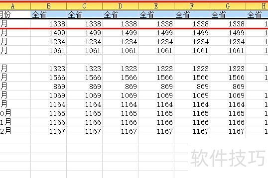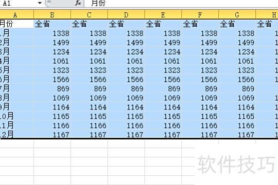 按住Ctrl+Shift+向下键,可迅速从首行选至末行。