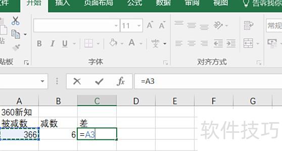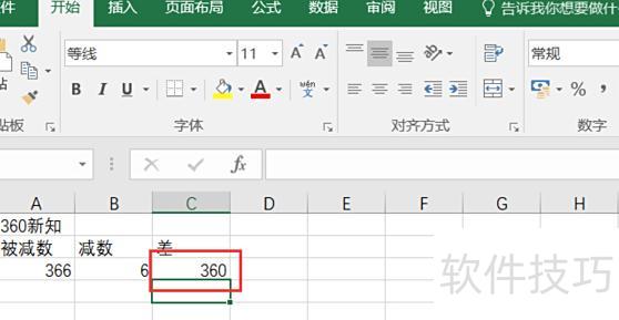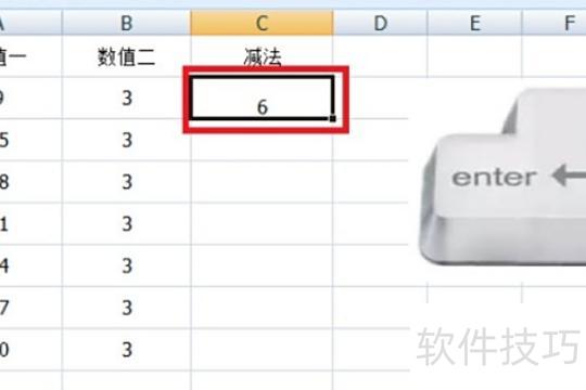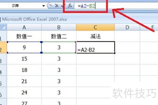 选中目标单元格,在编辑栏输入A2-B2,按回车即可完成减法运算并显示结果。