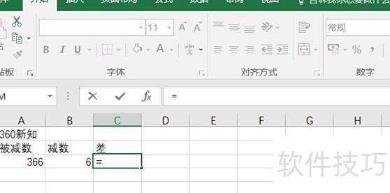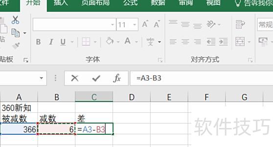 在输出单元格中输入=被减数单元格-减数单元格,例如=A1-B1。