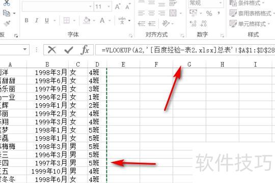 由于班级信息位于第四列,因此在公式中输入4,注意使用英文逗号分隔。