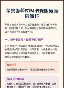问题可能出在SIM卡上,卡没插好,或者松动了,都会导致无服务,可以关机后,取出SIM卡,用橡皮擦,轻轻擦拭金属芯片,然后重新插紧,确保接触良好,另外,SIM卡可能老化损坏了,特别是用了很多年的老卡,可以去营业厅,换一张新卡试试。