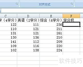 用Excel打开学生成绩表,确认各科对应的学分。