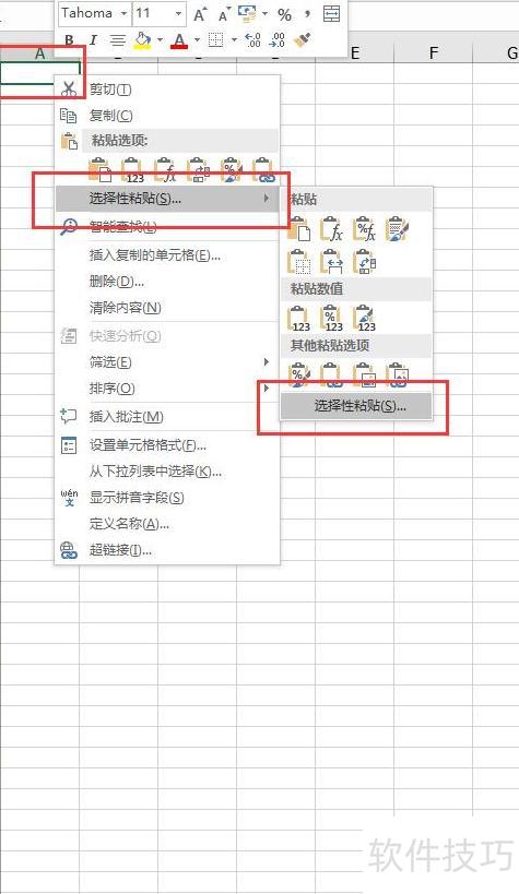 第二步,新建一个工作表,点击其中的A1单元格,右键选择选择性粘贴选项。操作步骤稍显复杂,文字描述可能不够直观,结合图示会更清晰易懂。