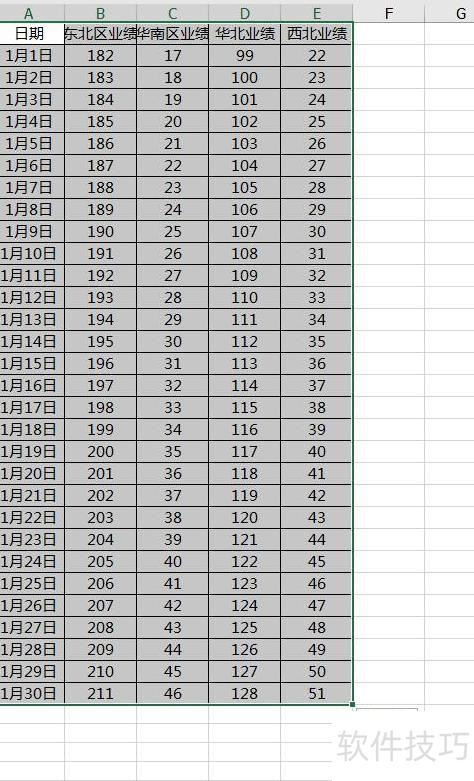 先看我预先做好的横向表格,因嫌麻烦随意复制了几行内容,重点不在数据,而在方法。该表记录整月30天的业绩,需不断向右拖动才能看到末尾。现在我们将表格从横向排列转换为纵向显示,使信息更清晰易读。
