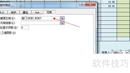 3.2 J16行的设置与入库单类似,只需将库管员改为领料人。设置控件格式时,点击数据源区域,选取部门表中C列对应范围,确认即可。