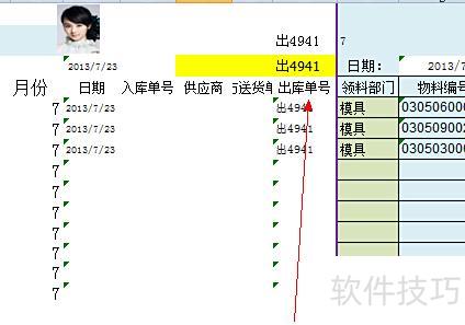 2.2 与入库单类似,J5:J14用于填写出库物料的编码,其数据有效性设置与入库单一致,请参考前文说明。