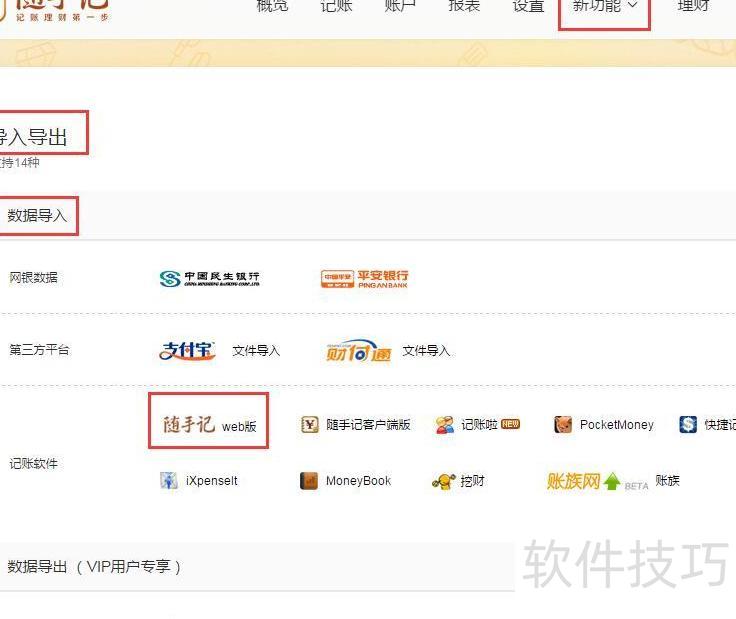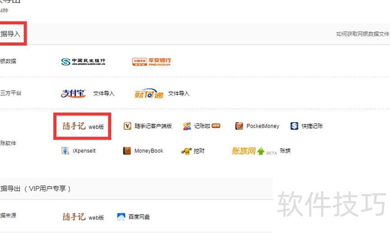 第二步:导入数据,登录随手记网页版,下载Excel模板。