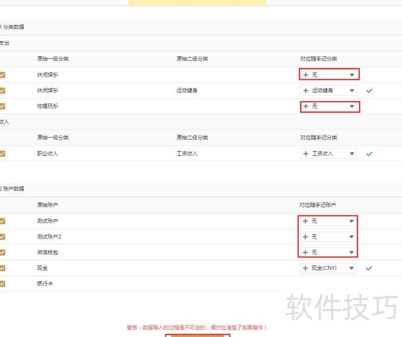 若原始数据账户和分类较多,建议导入前先在网页端调整好对应关系,再进行导入操作。